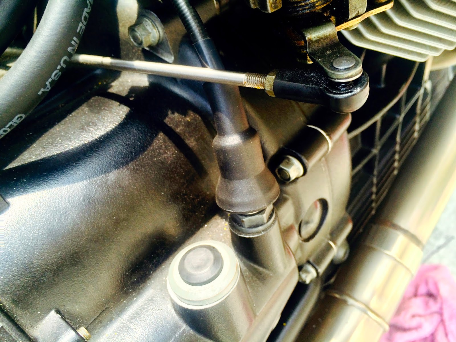 排気パイプ部。ここが一番熱いですね。150℃くらいです。